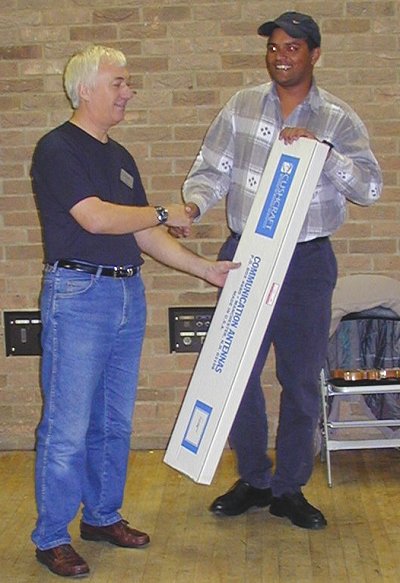 above photo shows Mike presenting the antenna to Johnny,ZD8KW. We will